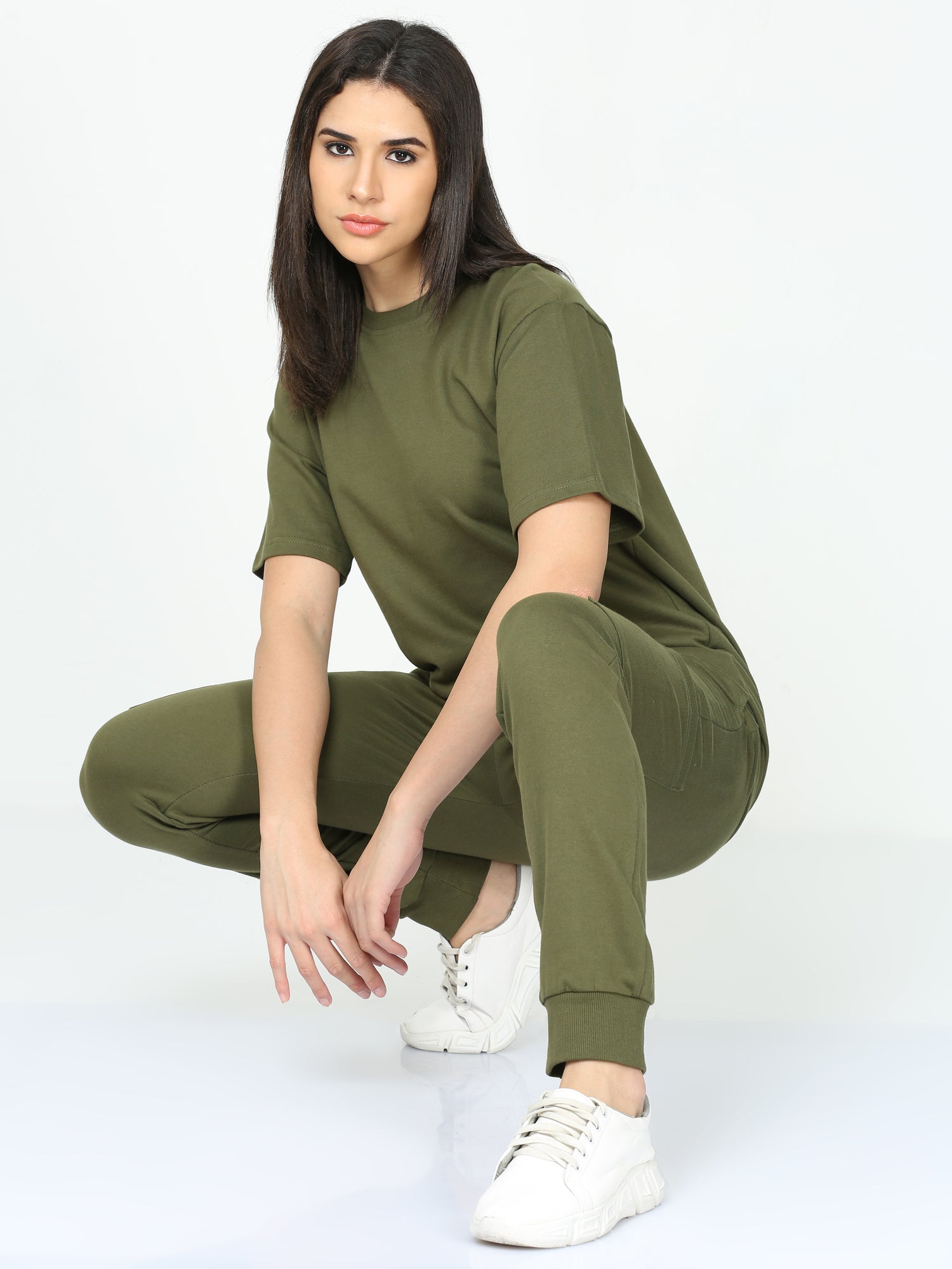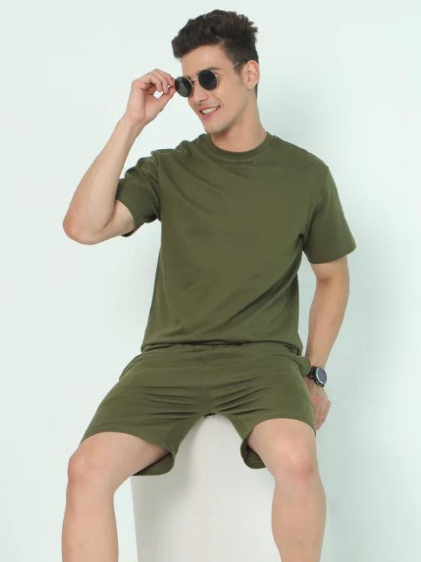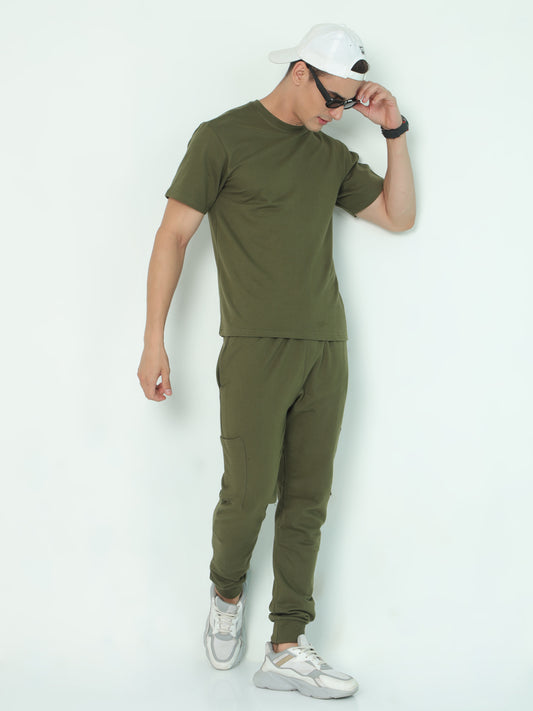 Olive Green Solid Premium Unisex T-Shirt and Joggers Co-ord Set