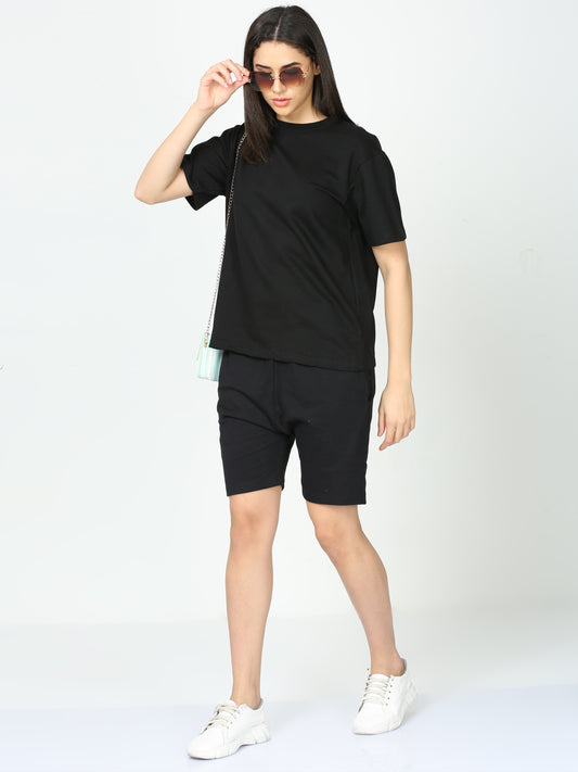Black Solid Premium Unisex T-Shirt and Shorts Co-ord Set